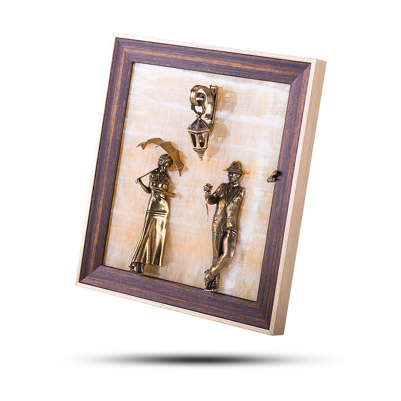 Панно "Девушка с парнем", камень оникс, 24*23 см