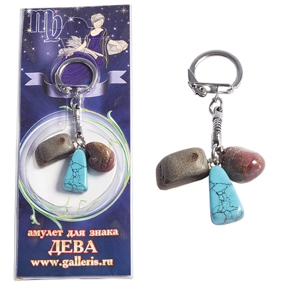 Брелок "Дева", камни тигровый глаз, яшма, бирюза