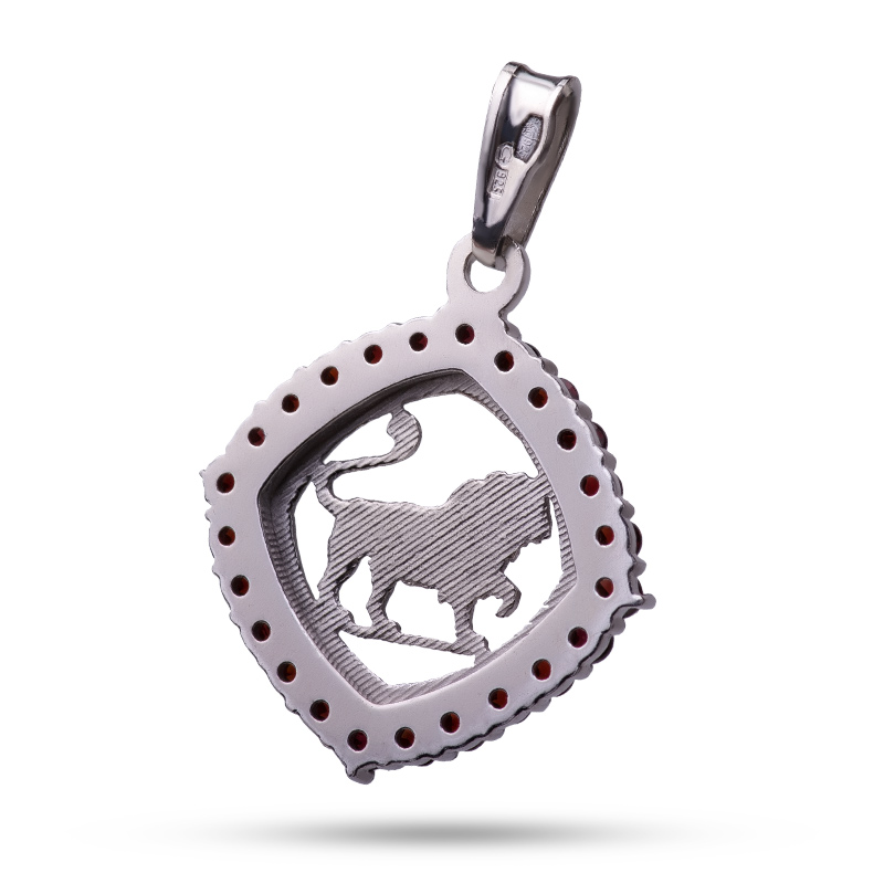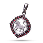 Кулон "Лев", камень гранат, 25 мм