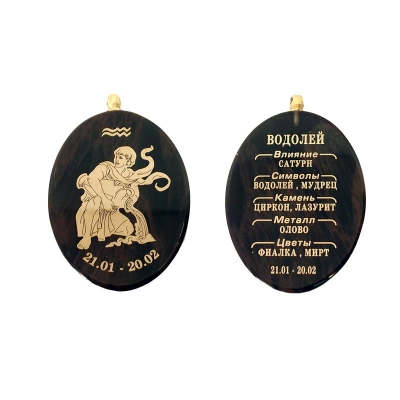 Кулон-брелок "Водолей", камень обсидиан