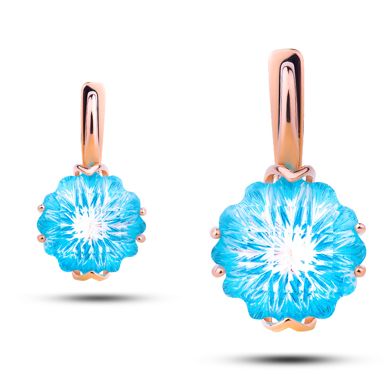 Серьги золотые с камнем топаз цветок, шахматка, 7,14г