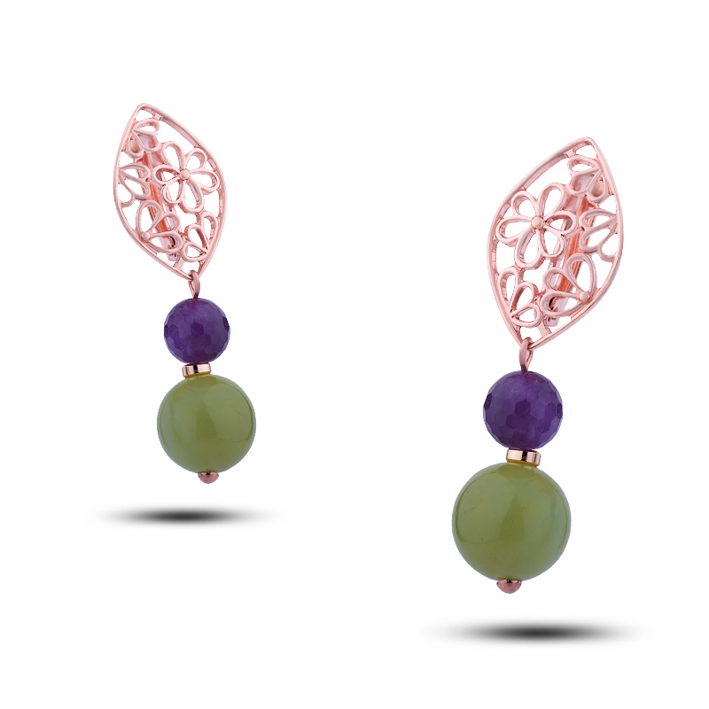 Серьги "Нимфа" из камней нефрит, аметист