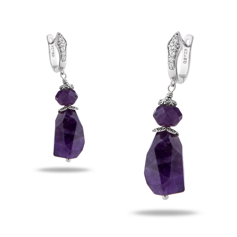 Серьги с камнем аметист