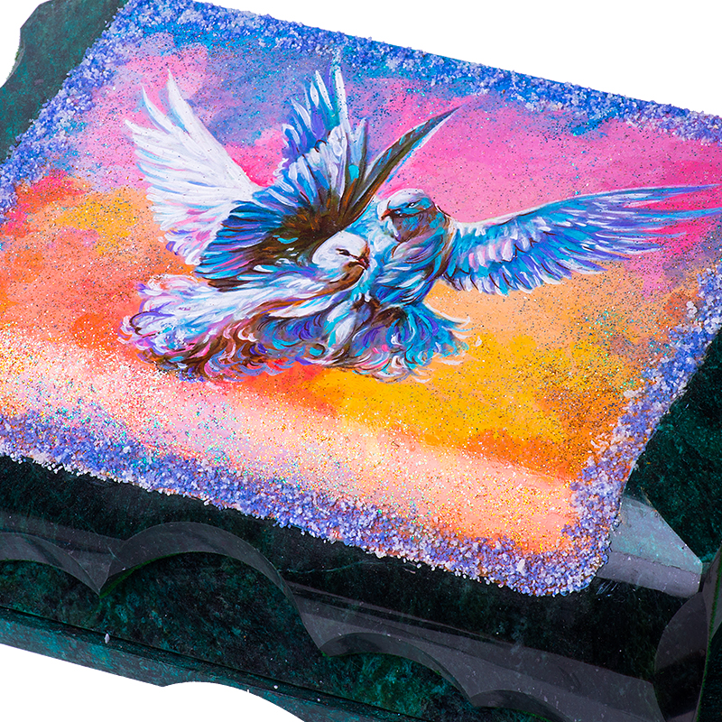 Cейф (Секрет) Камень малахит. Литьё бронза, позолота, ручная работа