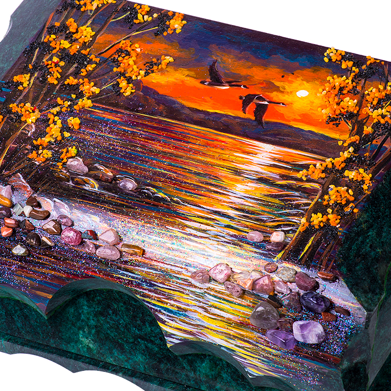 Шкатулка "Янтарное сияние", камень змеевик, 24 см