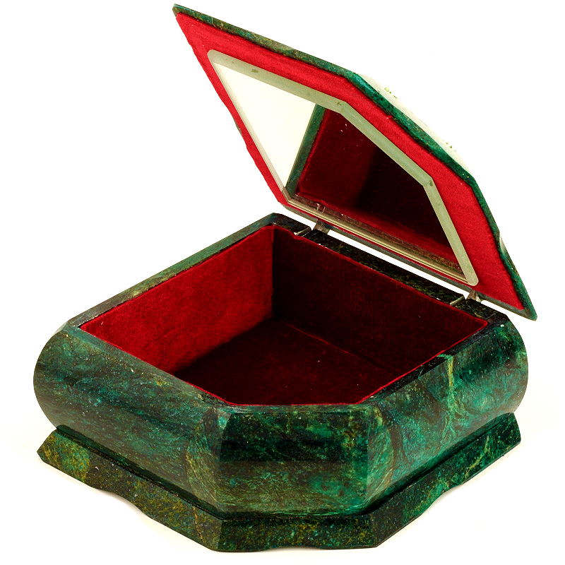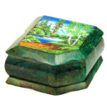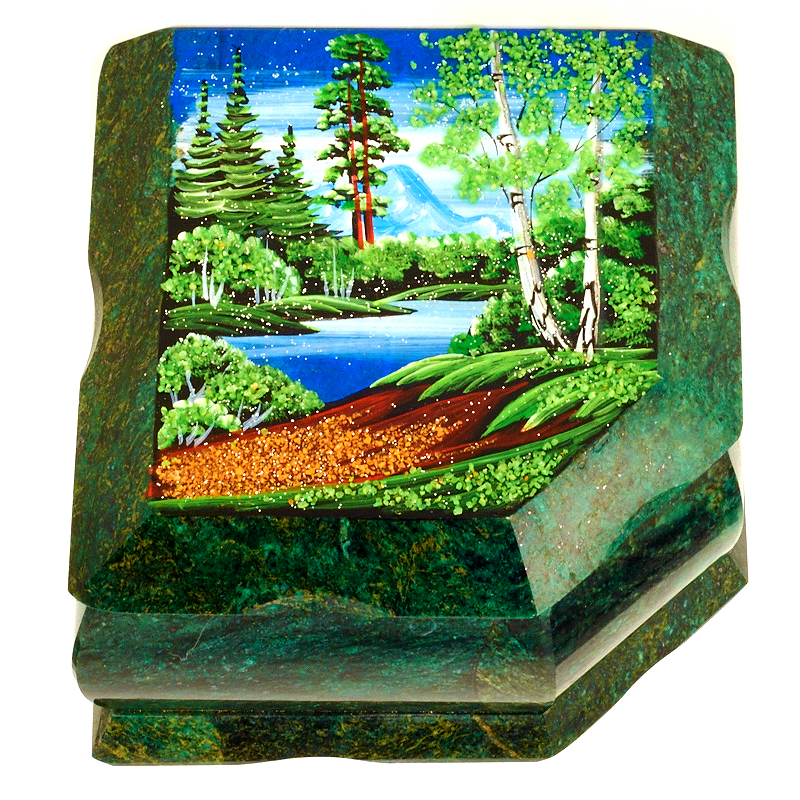 Шкатулка "Две березы", камень змеевик, 11,5 см