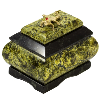 Шкатулка "Хозяйка медной горы", камень змеевик