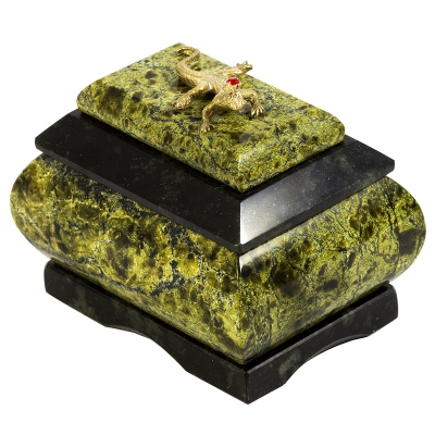 Шкатулка "Ящерица на камне", камень змеевик, 115 мм