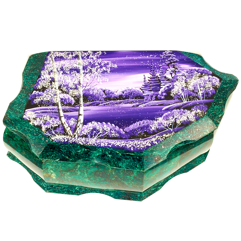 Шкатулка "Зимняя ночь", камень змеевик, 20 см