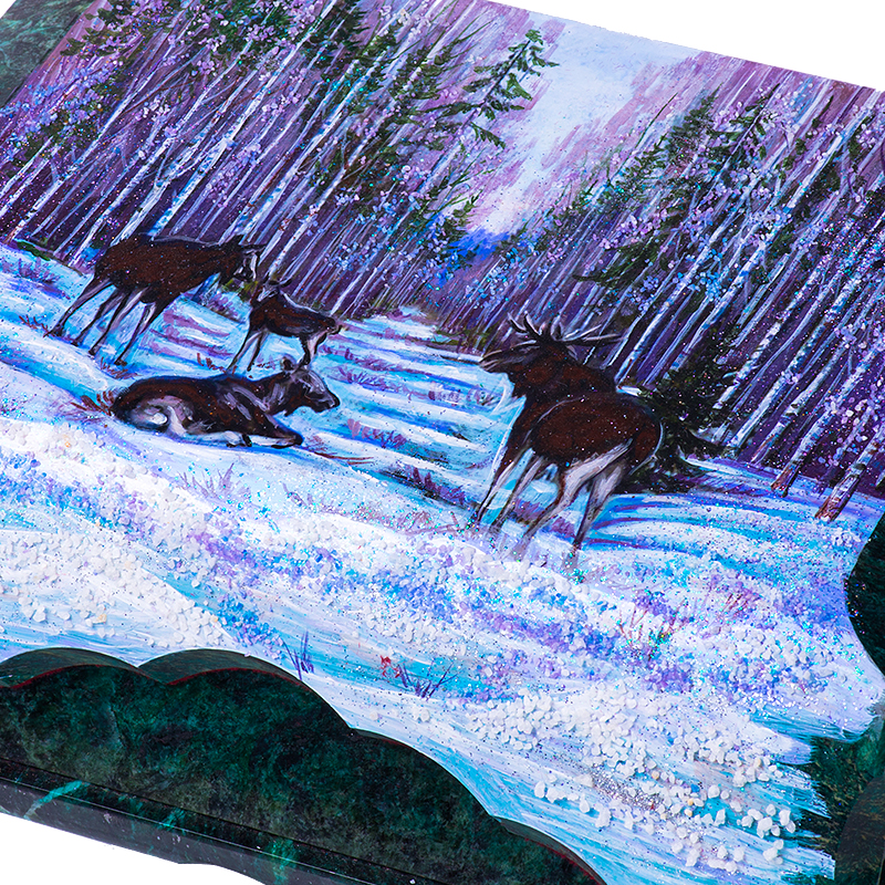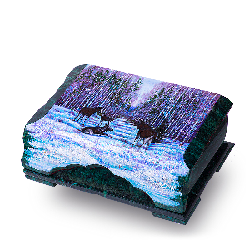 Шкатулка "Лоси", камень змеевик, 24 см