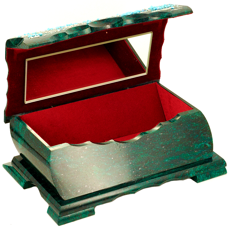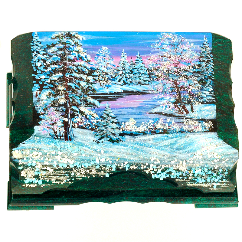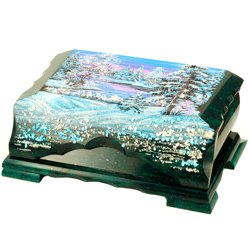 Шкатулка "Зимний закат", камень змеевик, 20 см