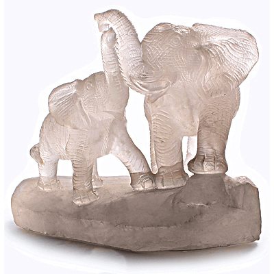 Скульптура "Слоны", камень горный хрусталь, 160 мм