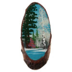 Срез дерева "Зимняя ель", камни змеевик, чароит, малахит, 220 мм