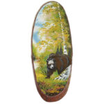 Срез дерева "Медведь", камни аметист, хризолит, цитрин, 80 см