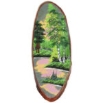 Срез дерева "Отражение", камни хризолит, малахит, 90 см