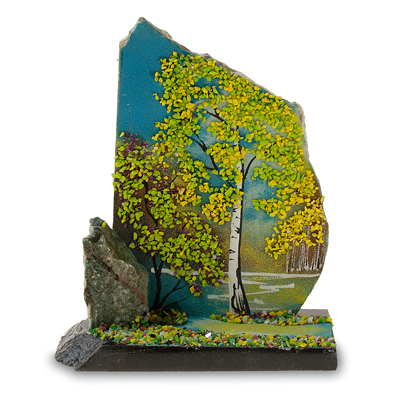 Картина «Осенний пейзаж» Драгоценный камень мрамор, цитрин Ручная работа