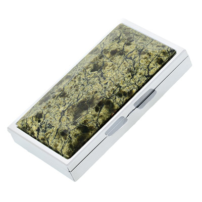 Таблетница с зеркалом, камень змеевик, 85 мм