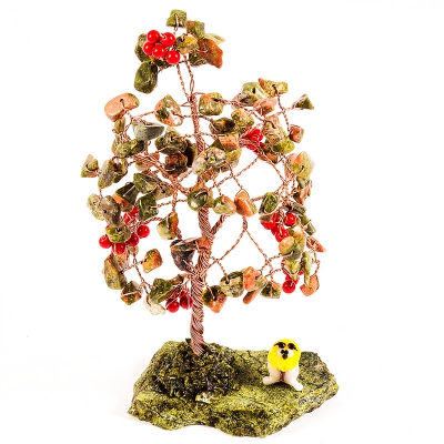 Дерево "Рябинушка", коралл, яшма, 135 мм