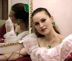 Тем временем на смотринах выбрали первой невестой красавицу Ульяну. Девушку справную, прелестную, русоволосую, с косой толстою, в пышном сарафане, с жестами мягкими, плавными. Всем пришлись по нраву и ее украшения из малахита. Они были признаны почтенным собранием самыми лучшими.