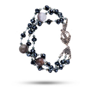 Браслет с кахолонгом, гематитом, кристаллами кварца