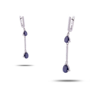 Серьги с камнями сапфир и фианит